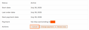You will be able to see all your membership details here. To cancel your subscription, you can click the cancel button.