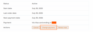 You will be able to see all your membership details here. To edit your payment method, you can click the change payment button.