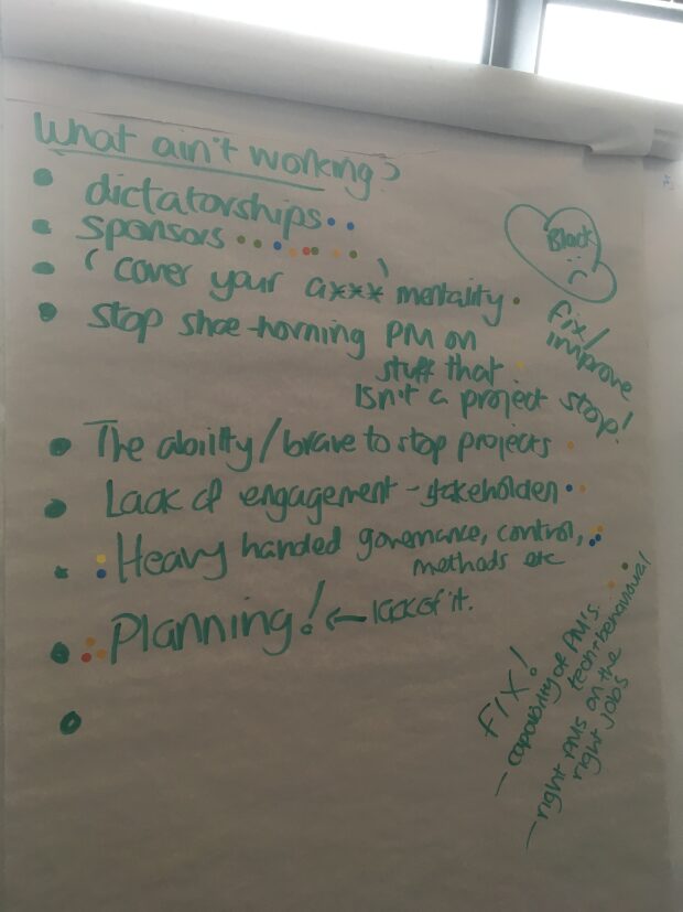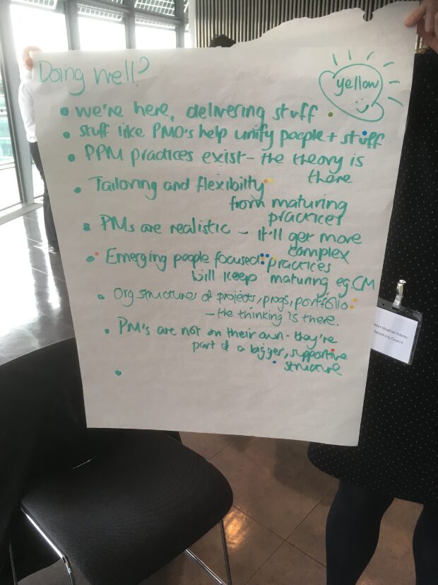 At the event we had an introductory session carried out by Sue Vowler (the first P3O guidance author). The session was all about the current project management industry in the UK. So let’s look at the question: