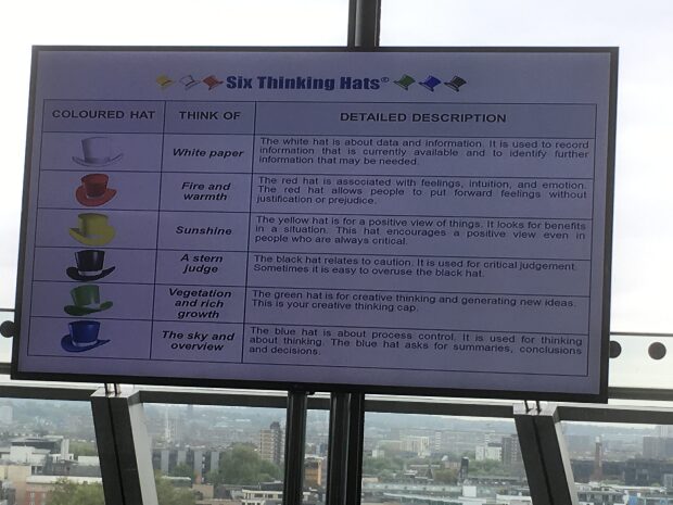 Ever done De Bono’s Six Thinking Hats? It’s a great way to get people thinking and collaborating: